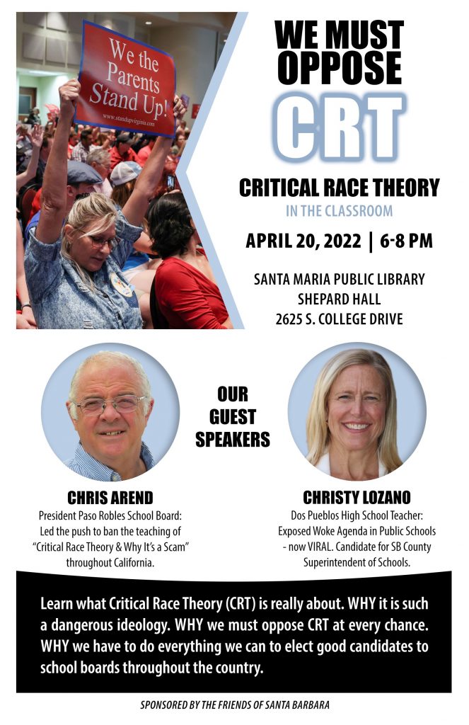 Learn what Critical Race Theory (CRT) is really about. WHY it is such a dangerous ideology. WHY we must oppose CRT at every chance. WHY we have to do everything we can to elect good candidates to school boards throughout the country.